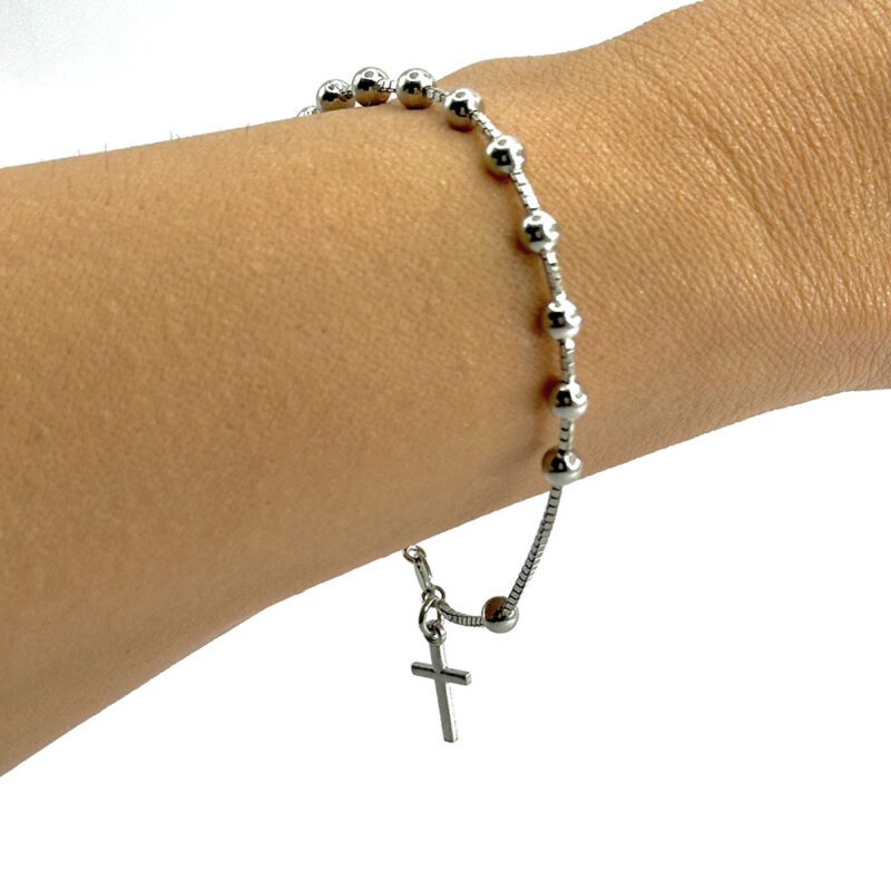 Bratara flexibila cu pietre din argint 925 placat cu rodiu.