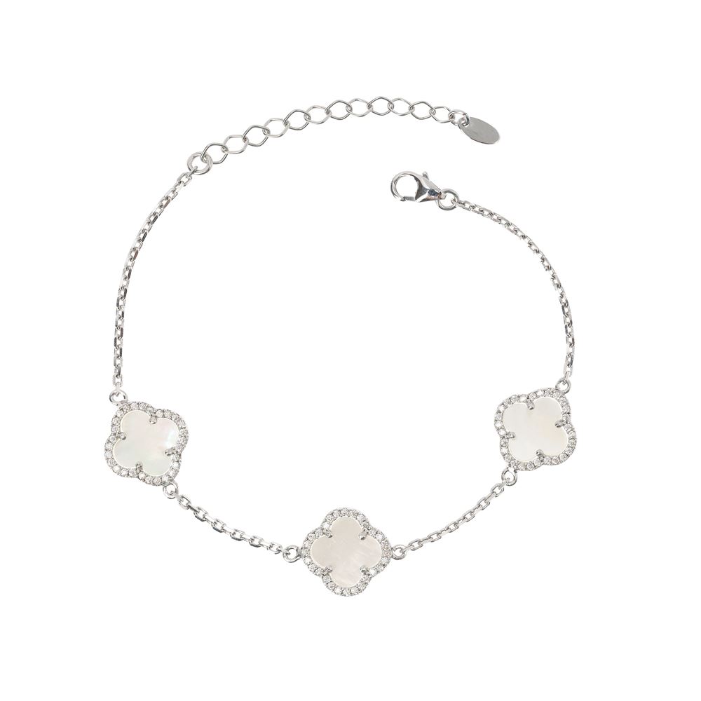 Material Argint 925 rodinat, culoare argintiu, greutate 5,53 g, lungime 17 cm/prelungire 4 cm, pietre zirconiu/dimensiune trifoi 10 mm.