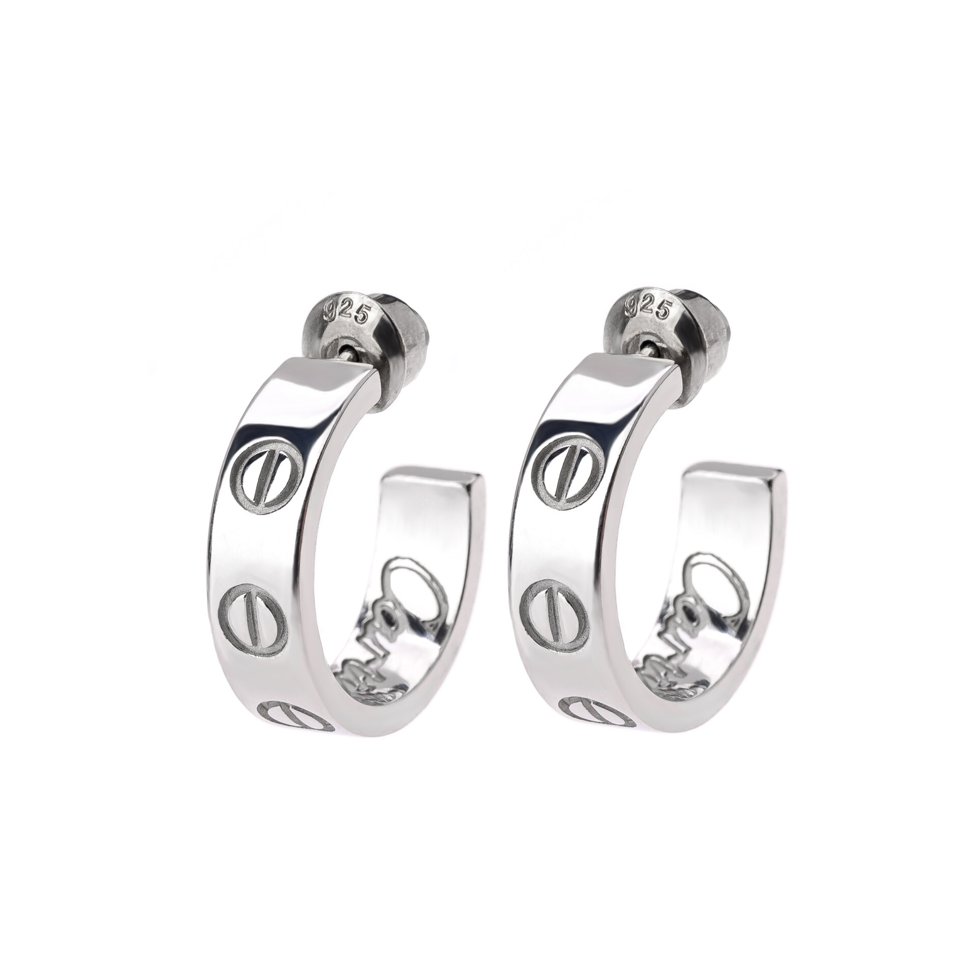 Material argint 925, culoare argintiu, greutate 8,5 g, inchidere surub, diametru 18 mm.