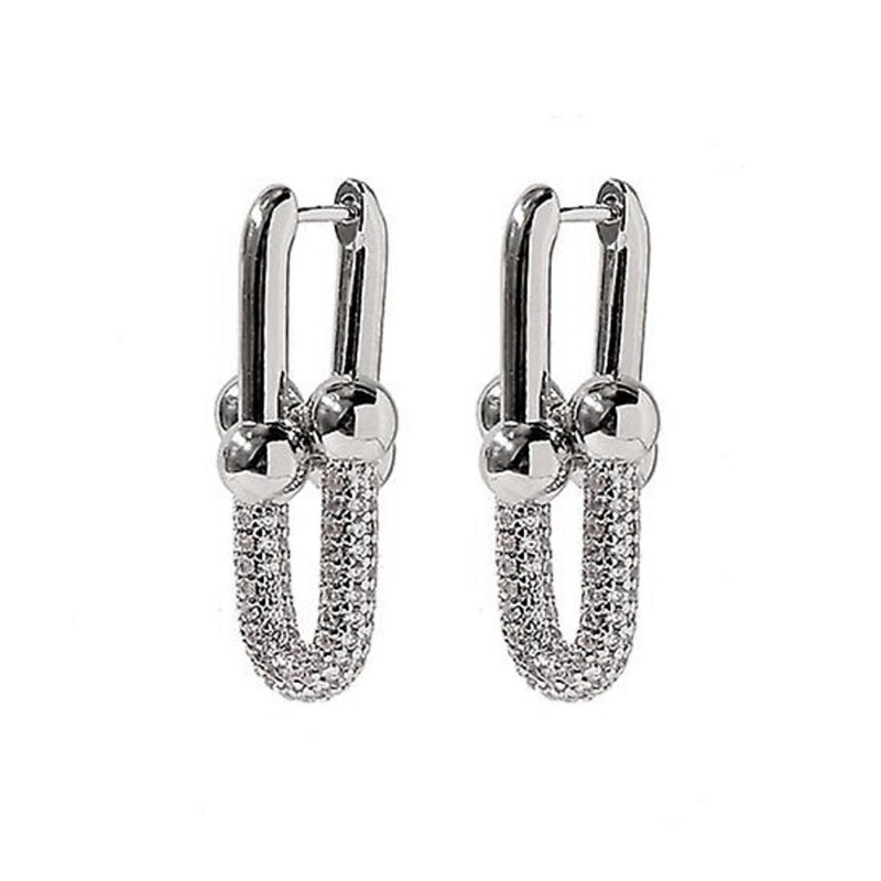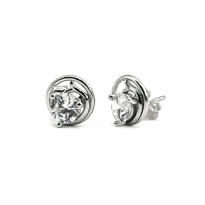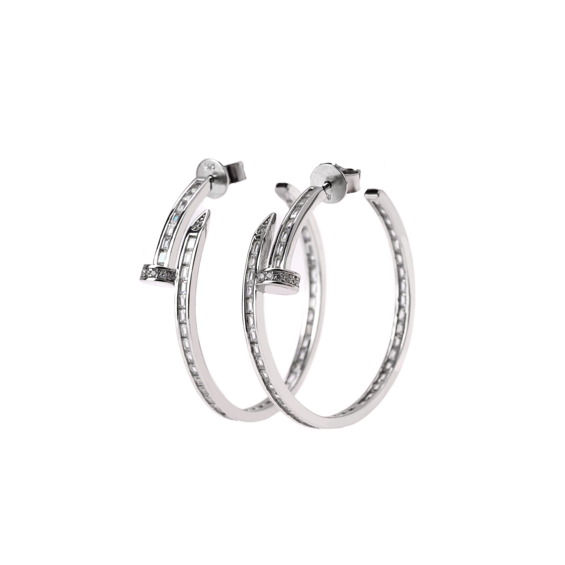 Cerceii din argint 925 placati cu rodiu, model cui cu pietre zirconiu.