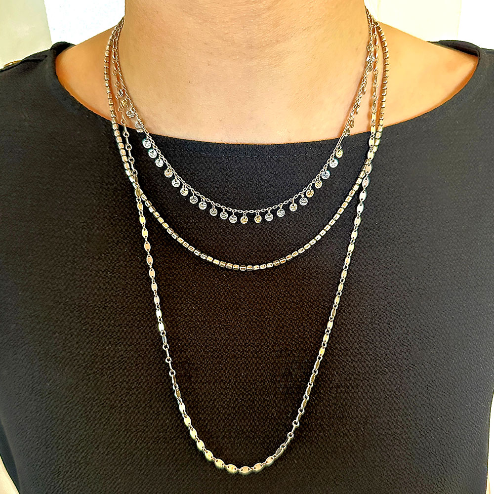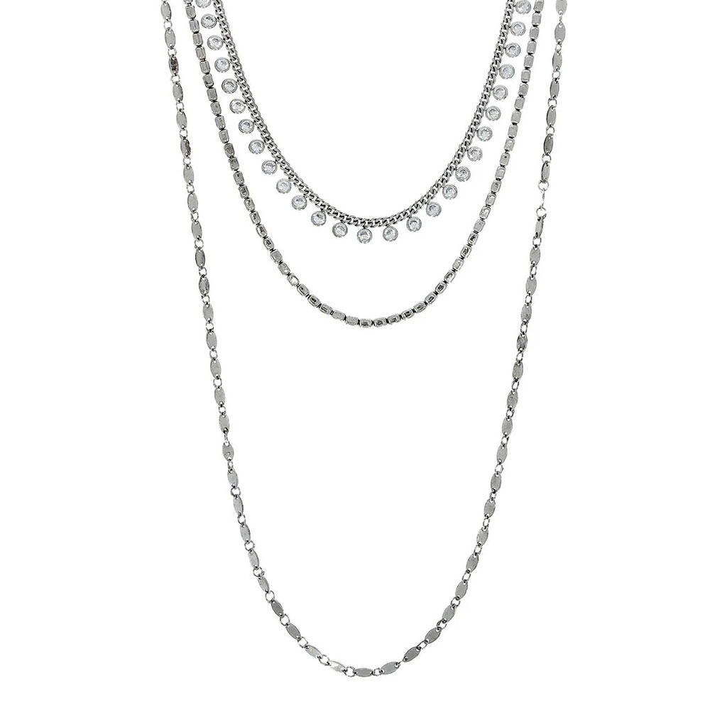 Colier triplu lant din argint 925 placat cu rodiu.