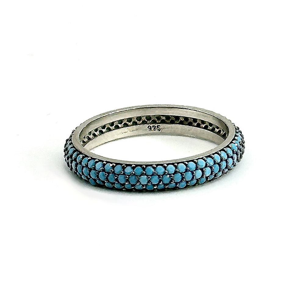 Inel Tennis turcoaz din argint 925 placat cu rodiu.
