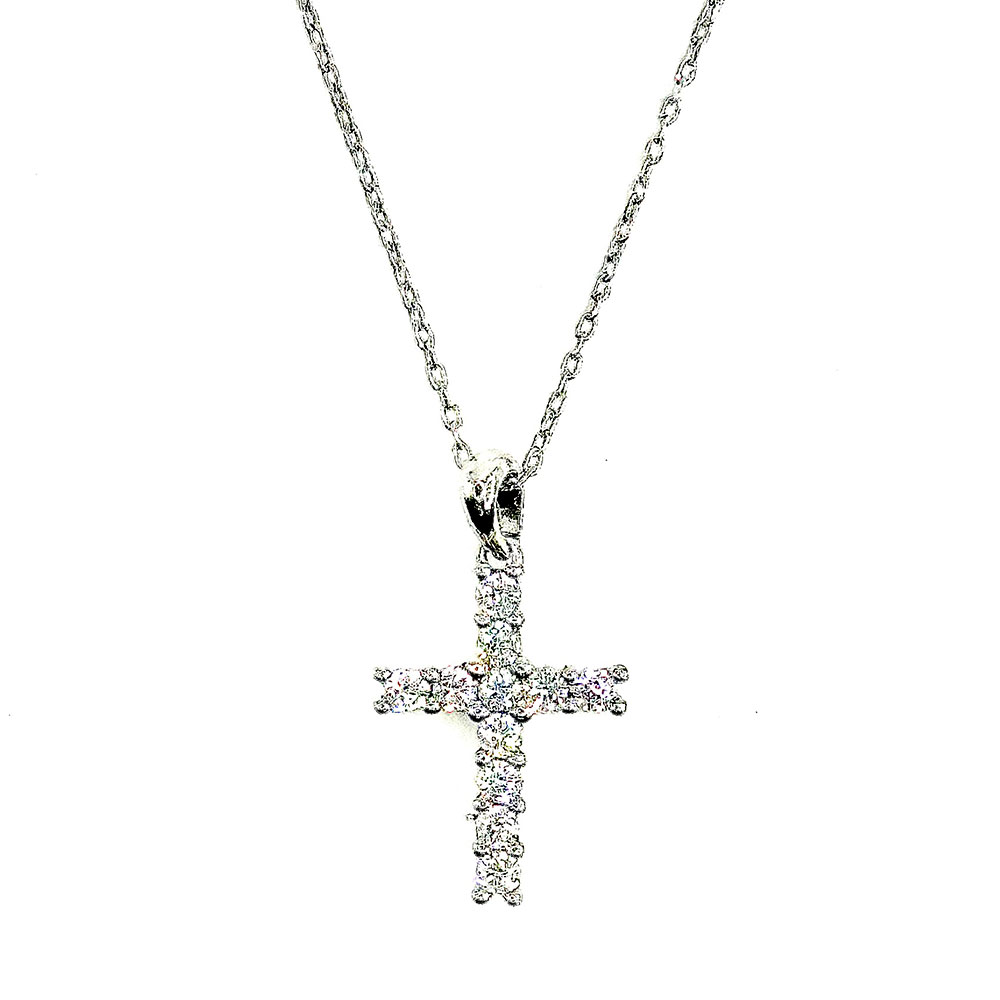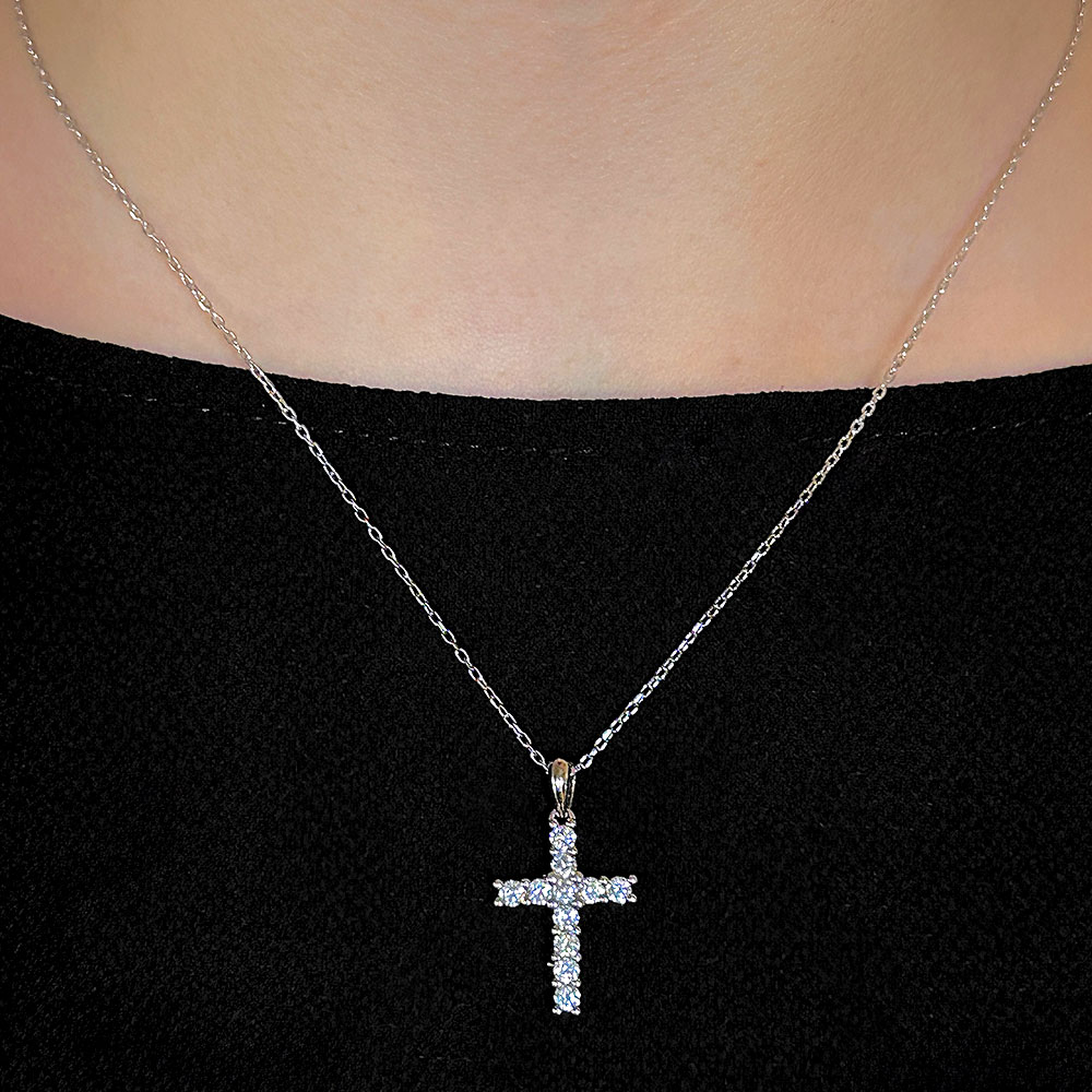 Lant cruce cu pietre zirconiu din argint 925 placat cu rodiu.